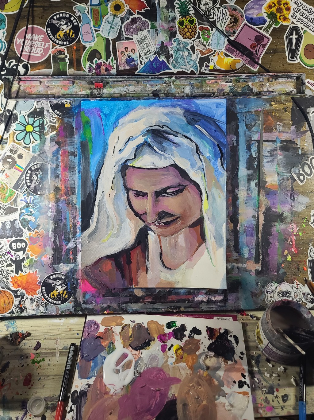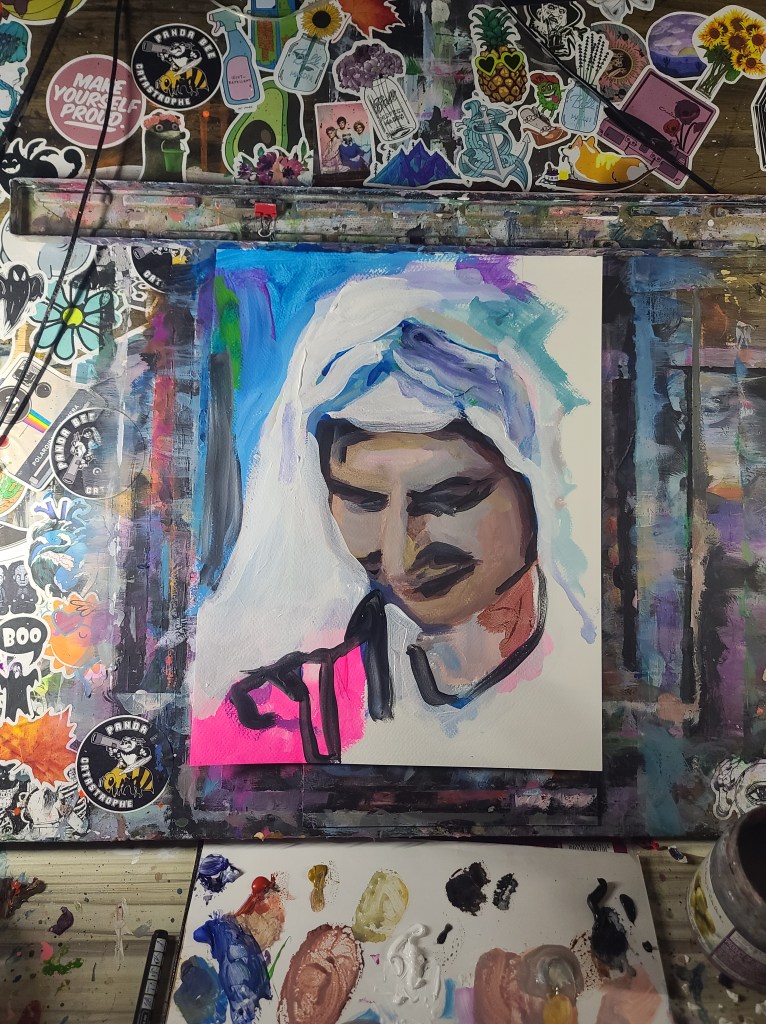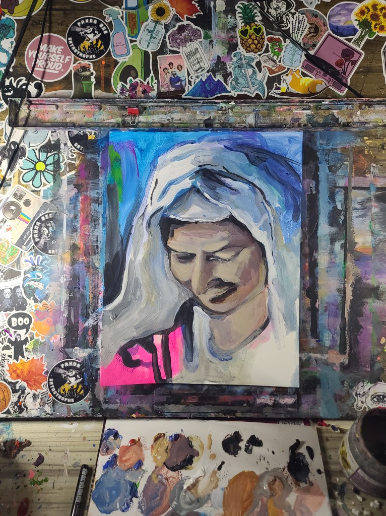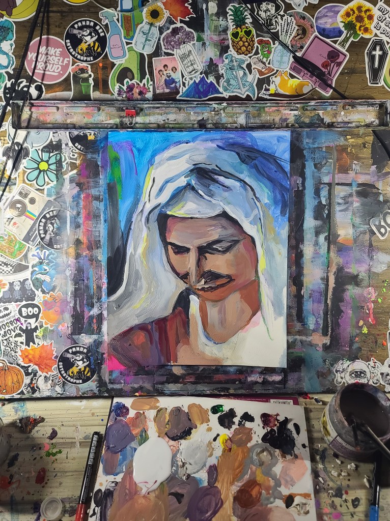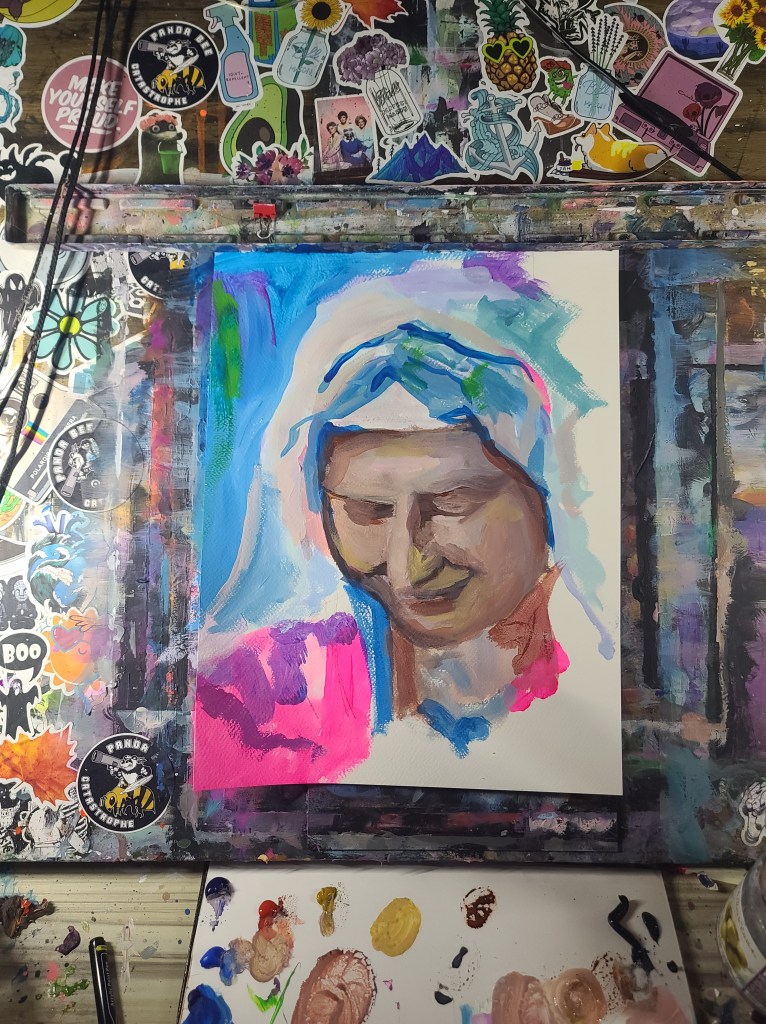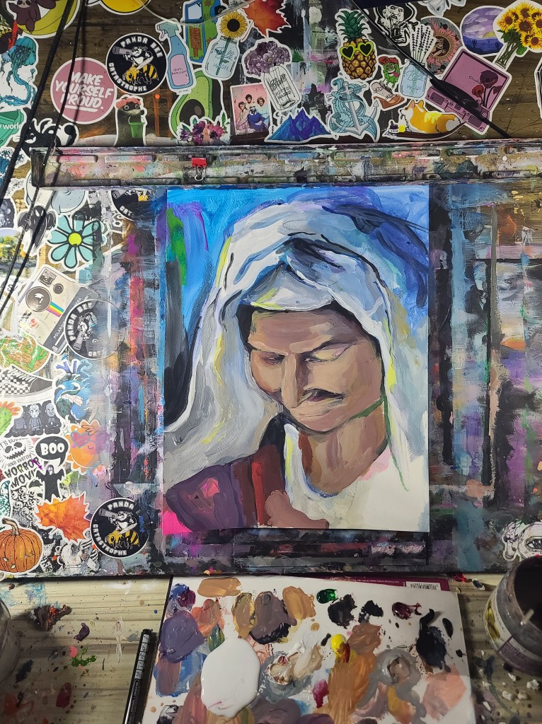 Source for the reference picture was from a YouTube video about butter churning. A very modern source for an old-timey feel.