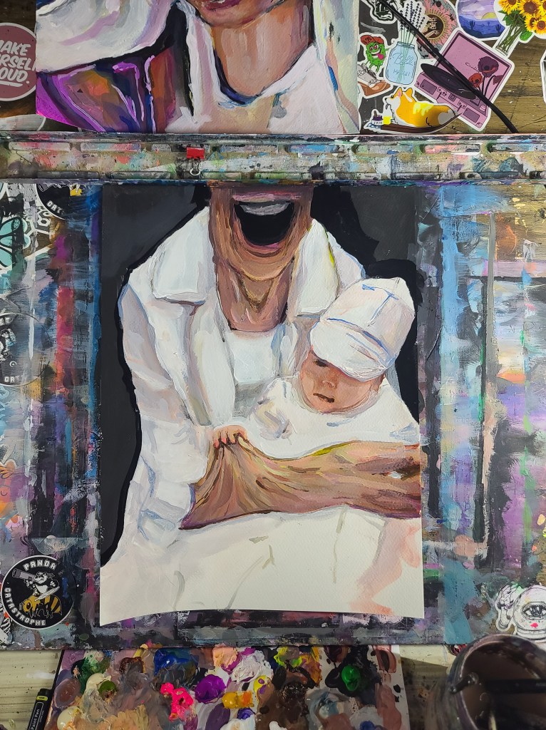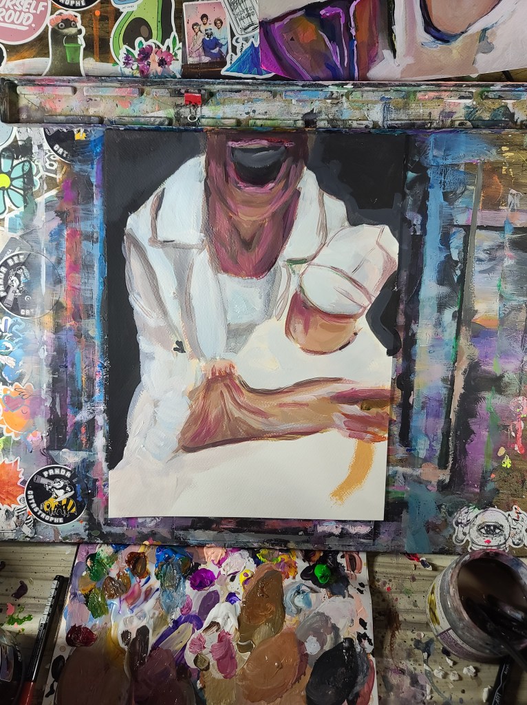While looking for interesting references for wrinkled skin I found a picture of a baby yanking on a woman’s skin. It was uncomfortable and eerie to look at.