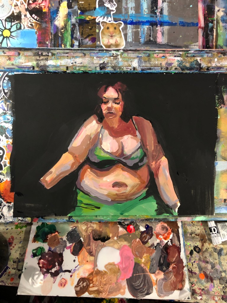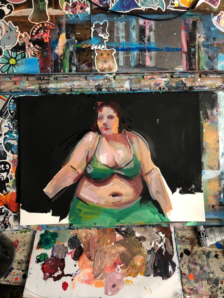A normal human body at rest. Comfortable in her own skin, on her own. Her lack of hands reinforces the feeling that she has given vital parts of herself to those around her, but this moment is about her, not other people. Rare moment of prioritizing herself.